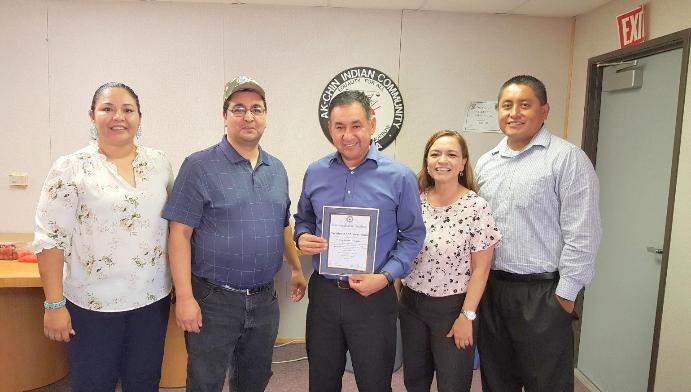 Vice Commander Leon Potter presented a Certificate of Appreciation to the Ak-Chin Council for their support of Legion and Auxiliary